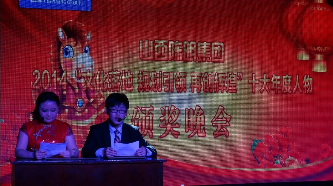 2014年2月16日15時(shí)許,陳明集團(tuán)2014“文化落地、規(guī)劃引領(lǐng)、再創(chuàng)輝煌”十年度人物頒獎(jiǎng)聯(lián)歡會(huì)于桔子酒店隆重開(kāi)幕。本次聯(lián)歡會(huì)對(duì)陳明的十大人物給予了表彰,并邀請(qǐng)每位員工家屬到場(chǎng)觀看員工們自編自演的節(jié)目。