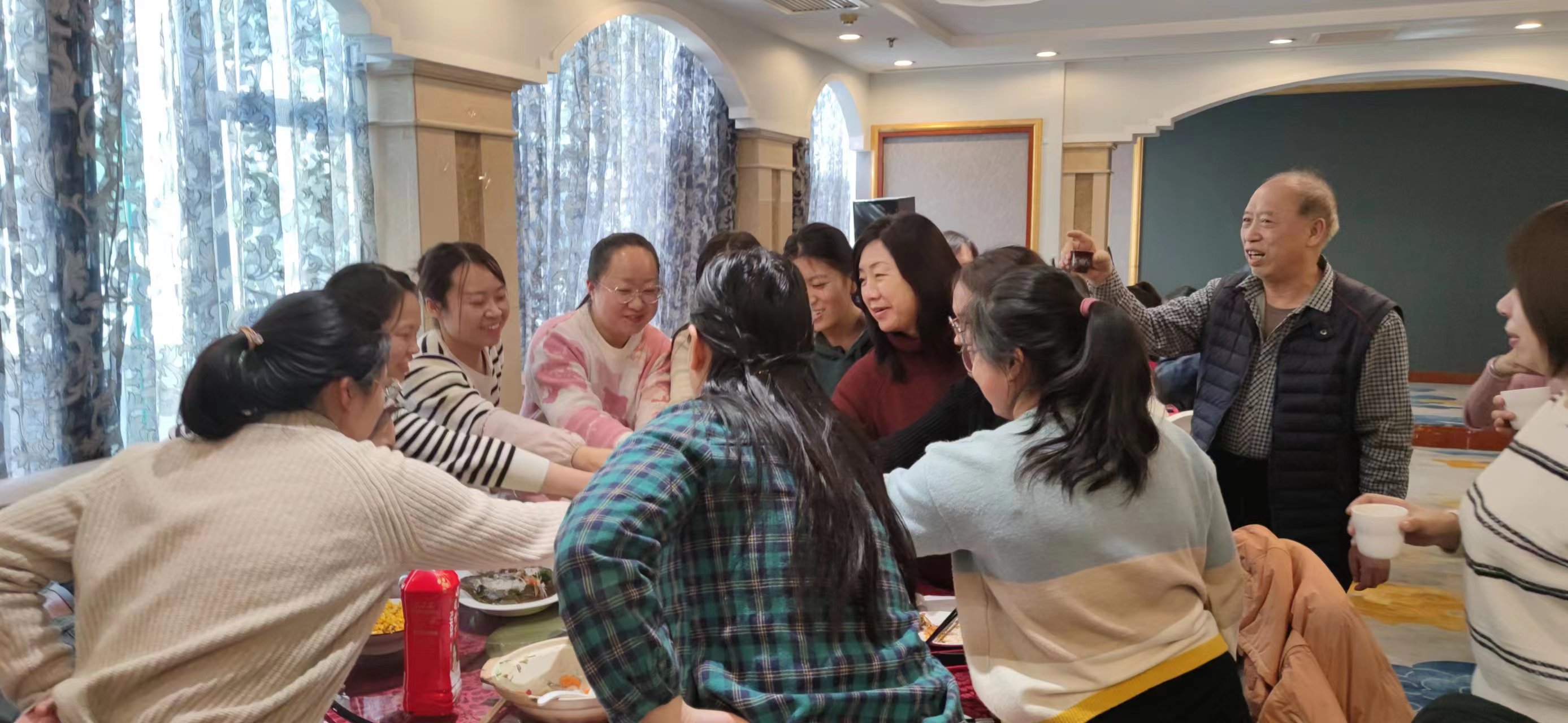 聚餐的過程中,在董事長陳雪琴的號(hào)召下,全體陳明人共同舉杯,慶祝這相聚的時(shí)刻,陳明人互相交談著,增進(jìn)了部門與部門之間,上級(jí)與下級(jí)之間的相互了解,增強(qiáng)了團(tuán)隊(duì)凝聚力,整個(gè)餐廳都彌漫著陳明集團(tuán)這個(gè)大家庭的暖意。