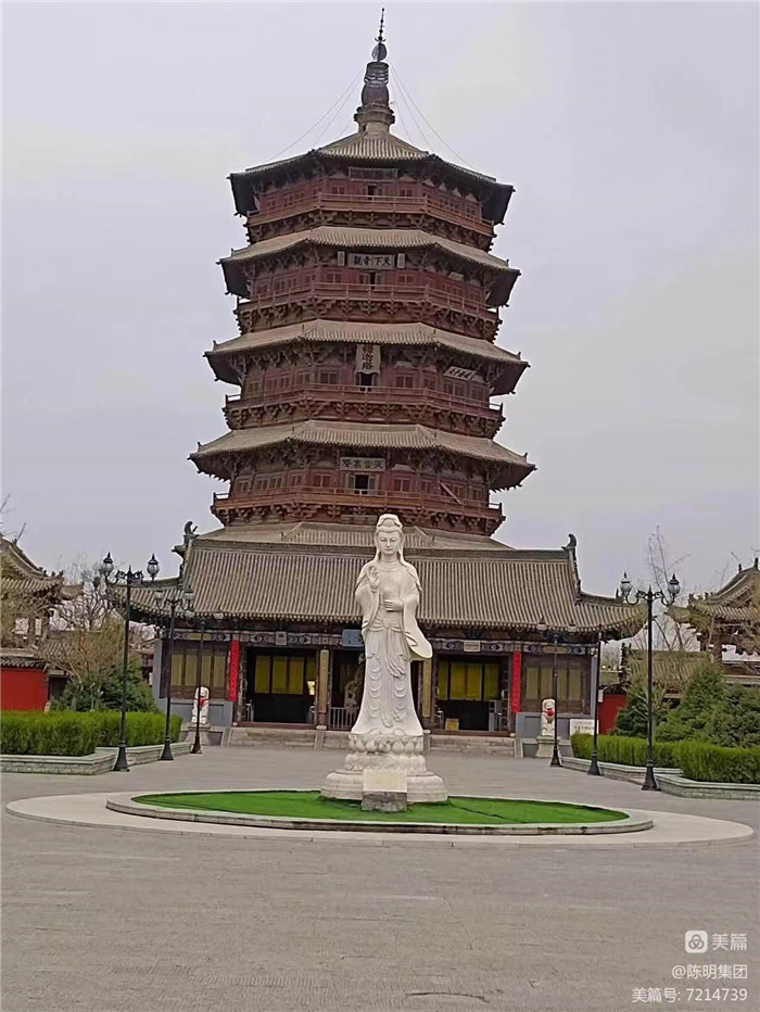 應縣木塔外觀為五層,而實際為九層。每兩層之間都設有一個暗層。這個暗層從外看是裝飾性很強的斗拱平座結構,從內(nèi)看卻是堅固剛強的結構層,建筑處理極為巧妙。應縣木塔與意大利比薩斜塔、巴黎埃菲爾鐵塔并稱“世界三大奇塔”。